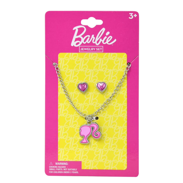 Barbie Metal Necklace & Earring Jewelry Set on Card