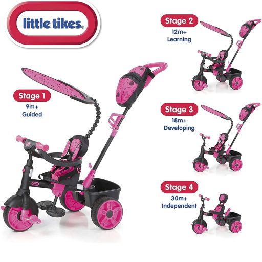 a bike that grows with your child. The Little Tikes Perfect Fit 4-in-1 Trike comes in 4 stages that cover infant stroll, pushing toddler trike, learning balance, and kids pedaling on their own