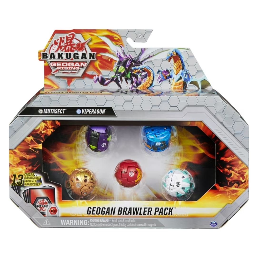 Every Geogan Brawler Pack comes with 2 exclusive Geogan you won’t find anywhere else, plus 3 Bakugan! Collect all of the packs and power up your brawling. Roll the Bakugan over the BakuCores or Gate-Cards for pop-open Baku-Action! Drop a Geogan onto a Gate-Card and watch as it pops open from its unique shape into a fierce creature! Brawl right out of the box. Armed with your new Geogan and Bakugan collectibles, face off against friends. Summon a Geogan to empower your Bakugan and conquer your opponent!