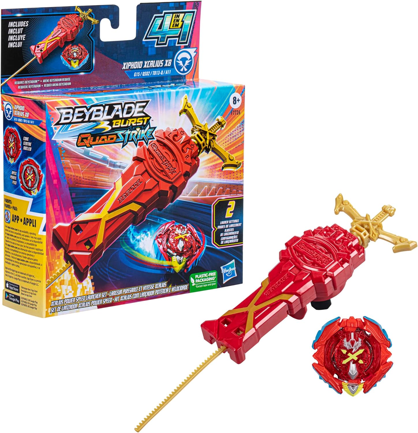 Beyblade Hasbro Burst QuadStrike Xcalius Power Speed Launcher Pack, Battle Game Set with Xcalius Power Speed Launcher and Right-Spin Battling Top Toy