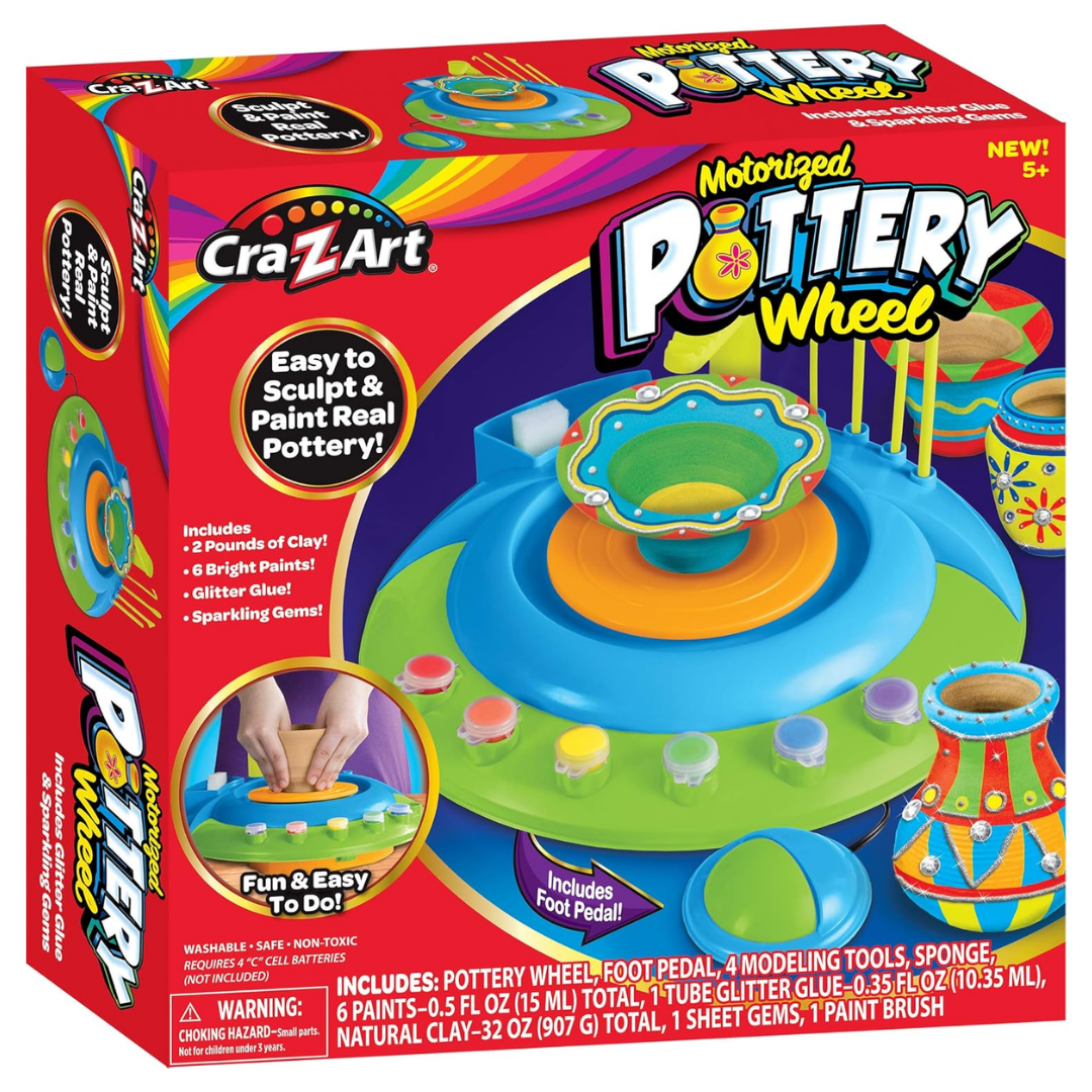 Create real pottery with The Cra-Z-Art Children’s Motorized Pottery Wheel Activity Set! Create, sculpt and decorate cool pottery, so easy to use! Great arts and crafts project for home, school, daycare, art studio, DIY parties and more. Use your imagination and create a beautiful piece of art to display such as a vase, mug or bowl.