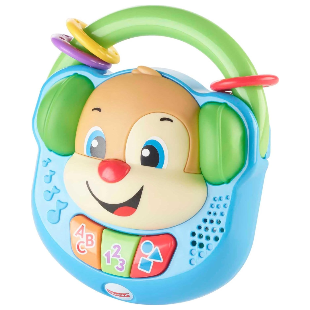 Shaped like a friendly music player, this interactive toy features bright buttons, fun lights, and over 30 playful songs, melodies, and learning phrases.