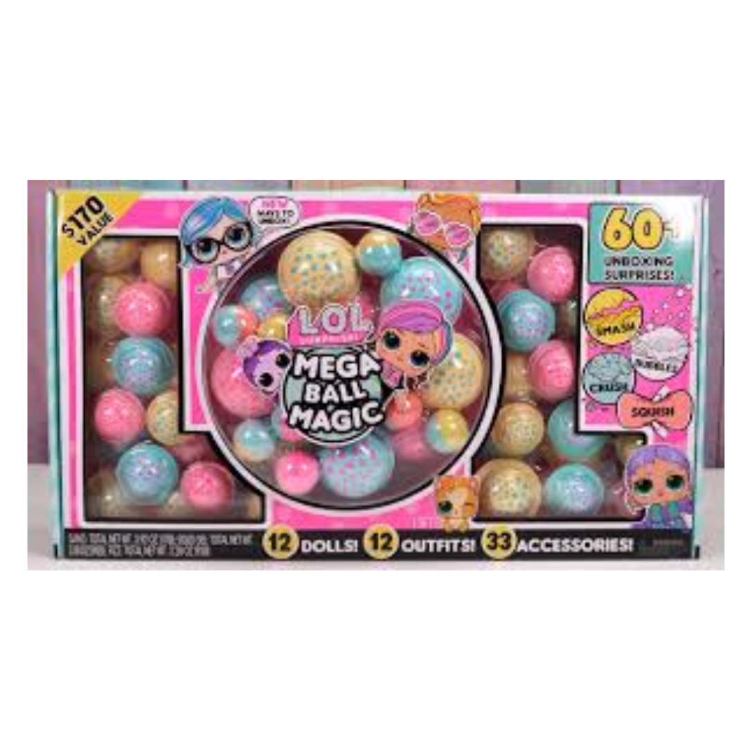 - HOURS OF UNBOXING: Unbox 12 dolls, 12 outfits, and 33 mix & match accessories, with 60+ surprises and more L.O.L. Surprise balls than ever; the ultimate, MEGA unboxing has arrived