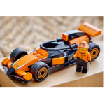 Includes a McLaren-inspired race car and F1 driver minifigure