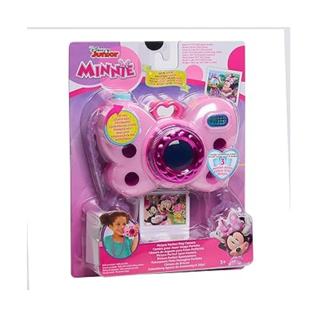 - Aim, Smile, and Shoot: Strike a pose and say “Cheese!” with the Disney Junior Minnie Mouse Picture Perfect Play Camera.